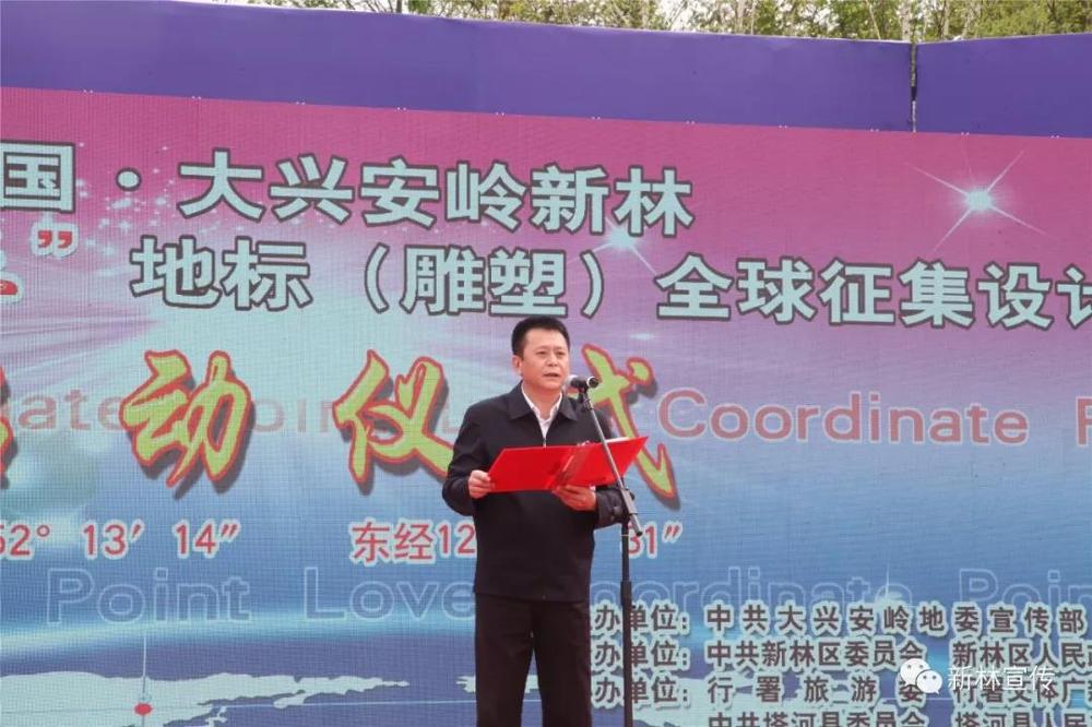 图为新林区委副书记、区(局)长林建军在启动仪式上发布《中国·大兴安岭新林征集“爱情坐标点”地标(雕塑)设计方案的公告》 徐晶 摄